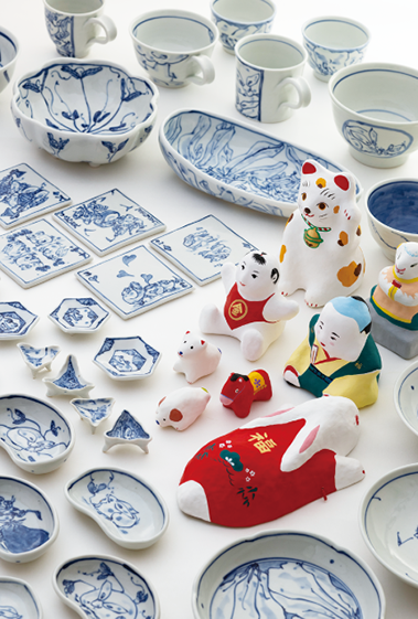 動物や植物などの楽しい絵付けの岩田ゆりさんの器と、張り子屋土筆(つくし)の愛嬌ある作品が賑やかに集まります。我が家でも出番の多い岩田さんの器は、絵付けの面白さだけでなく、使いやすく安定感のある形も魅力です。厄除け、縁起物として知られる福々しい張り子も揃います。